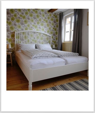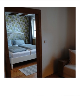 und ist 26 qm groß. Sie bestehtaus einem Wohnzimmer mit Essecke und Küchenzeile, einem Schlafzimmer und einem Bad mit Dusche und WC.Der Dielenboden, freigelegtes Fachwerk und Holzpanele im Wohnzimmer geben den Räumen ihren ganz eigenen Charme. Die kleine Küche ist mit einem Zweiplattenherd, Kühlschrank und einer Basisausrüstung zum Kochen kleiner Gerichte ausgestattet. Das Sofa im Wohnzimmer kann gegebenenfalls zu einem Schlafsofa umfunktioniert werden.