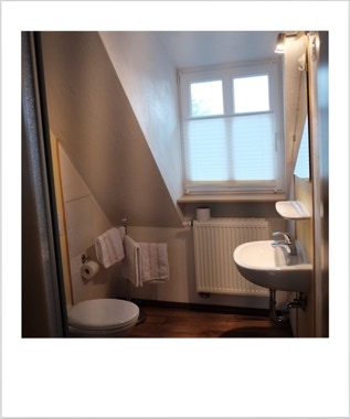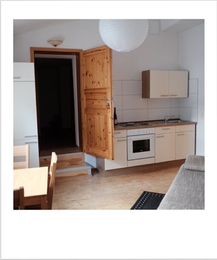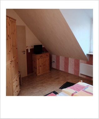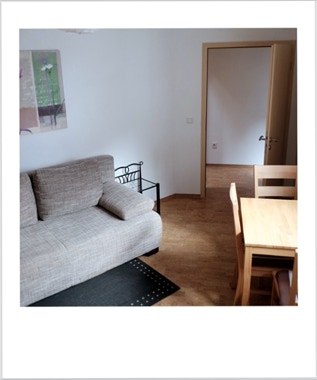 Unsere Wohnung Nummer 5 liegt im zweiten Stock und hat eine Grundfläche von ca. 43qm. Einst war hier der Dachboden des Dreher-Anwesens. Wohn- und Schlafzimmer sind durch ein Bad mit Dusche und WC sowie einer Küchenzeile getrennt. Die Küchenzeile beinhaltet alles, was Sie zum Zubereiten kleiner Mahlzeiten benötigen.Im Wohnzimmer befindet sich eine Eßecke ebenso wie ein großes Sofa, das zum Ausruhen und Entspannen einlädt.