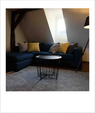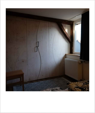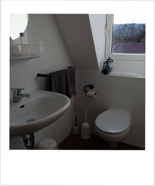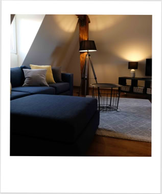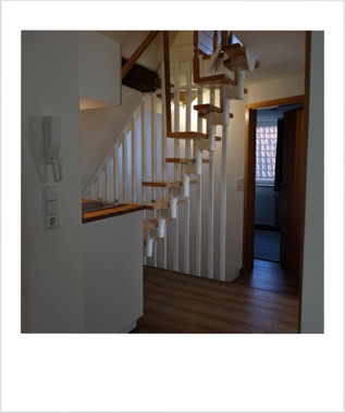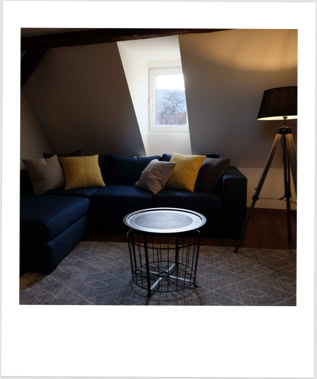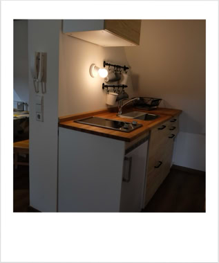 Unsere Wohnung Nummer 4 liegt im zweiten und dritten Stock und hat eine Grundfläche von ca. 60qm. Einst war hier der Dachboden des Dreher-Anwesens. Wohn- und Schlafzimmer sind durch ein Bad mit Dusche und WC sowie einer Küchenzeile getrennt. Die Küchenzeile beinhaltet alles, was Sie zum Zubereiten kleiner Mahlzeiten benötigen.Im Wohnzimmer befindet sich eine Eßecke ebenso wie ein großes Sofa, das zum Ausruhen und Entspannen einlädt.